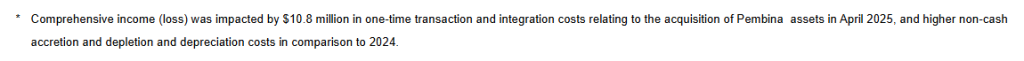 Our 2025 results are highlighted by our accretive acquisition of Pembina assets in April 2025, disciplined capital allocation and delivery of strong returns to shareholders. The acquisition was financed with an increase to our credit facilities, issuance of common shares and an oversubscribed $33.8 million bought deal equity financing.